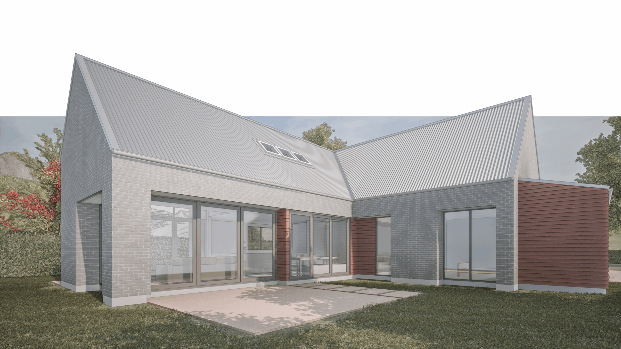 Generous glazing captures soft natural light throughout the day, enhancing the warmth of the interior palette. Indoor–outdoor transitions are carefully considered, creating living areas that open to sheltered patios and garden spaces. The layout encourages connection to the landscape while maintaining comfort through all seasons.